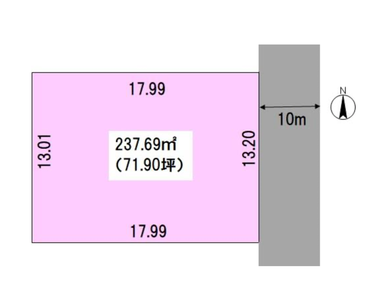 土地面積 実237.69㎡(71.90坪) 接道 東側(公道)幅 約10.0m 間口 約13.20m
